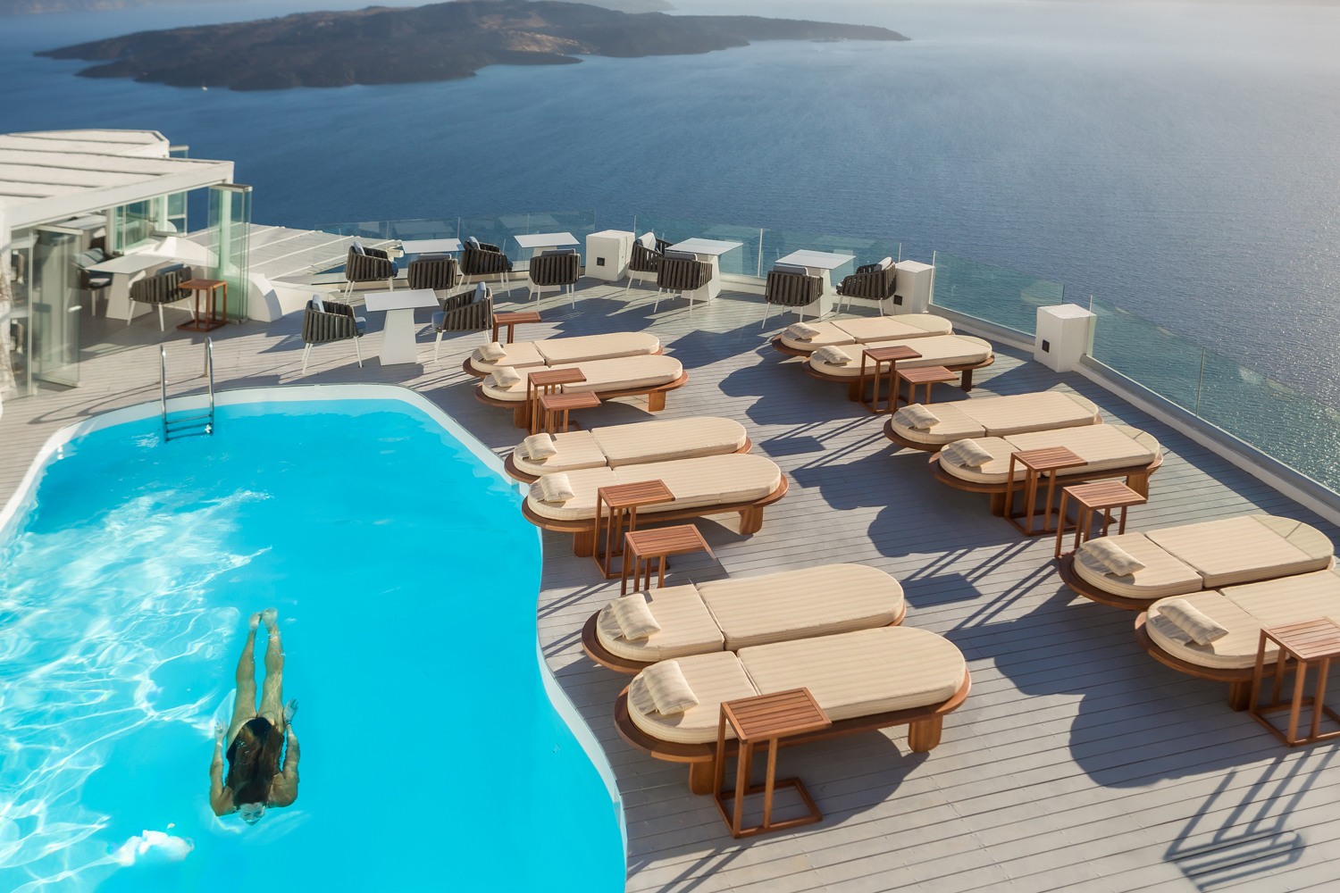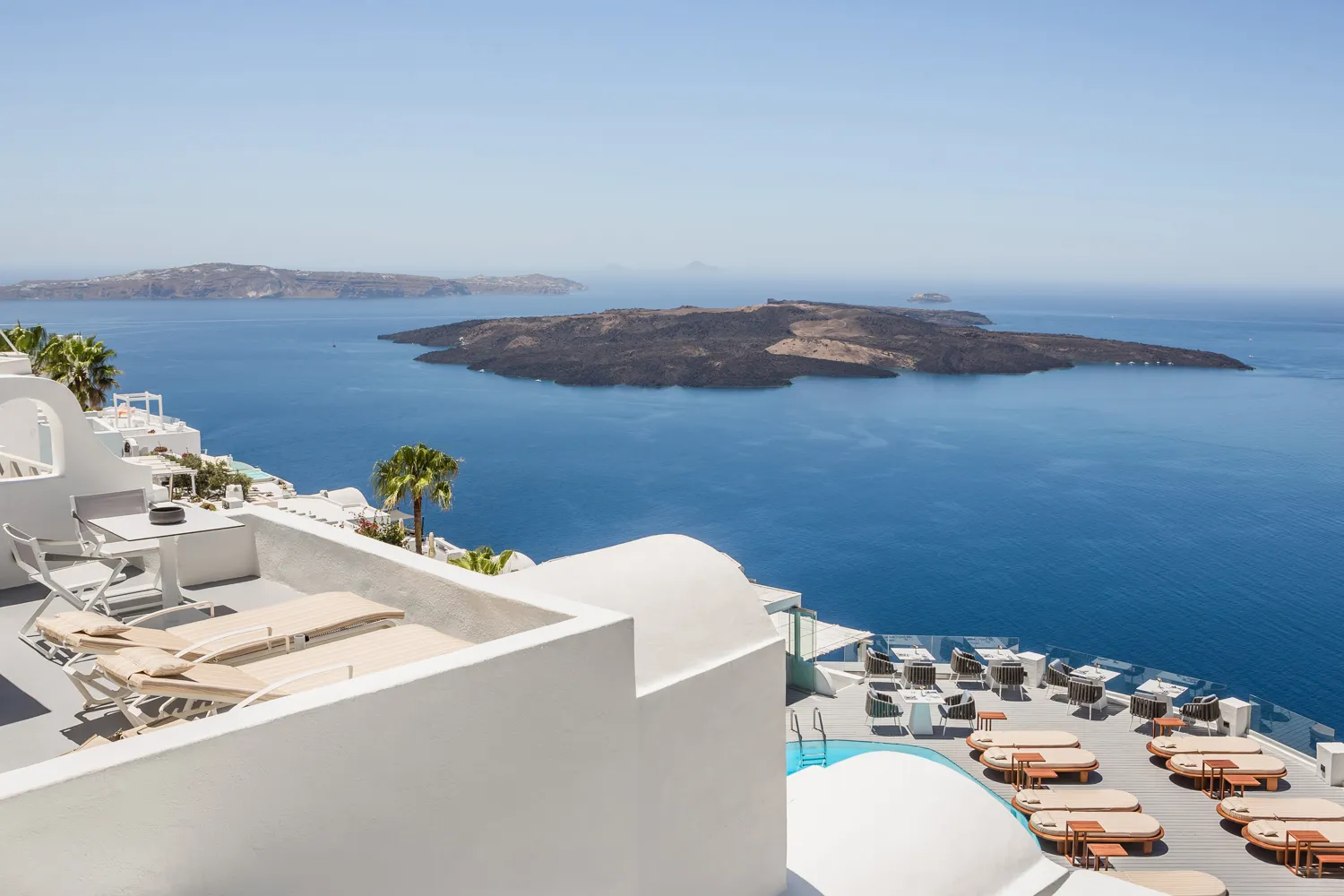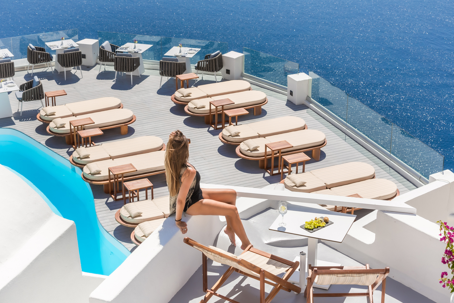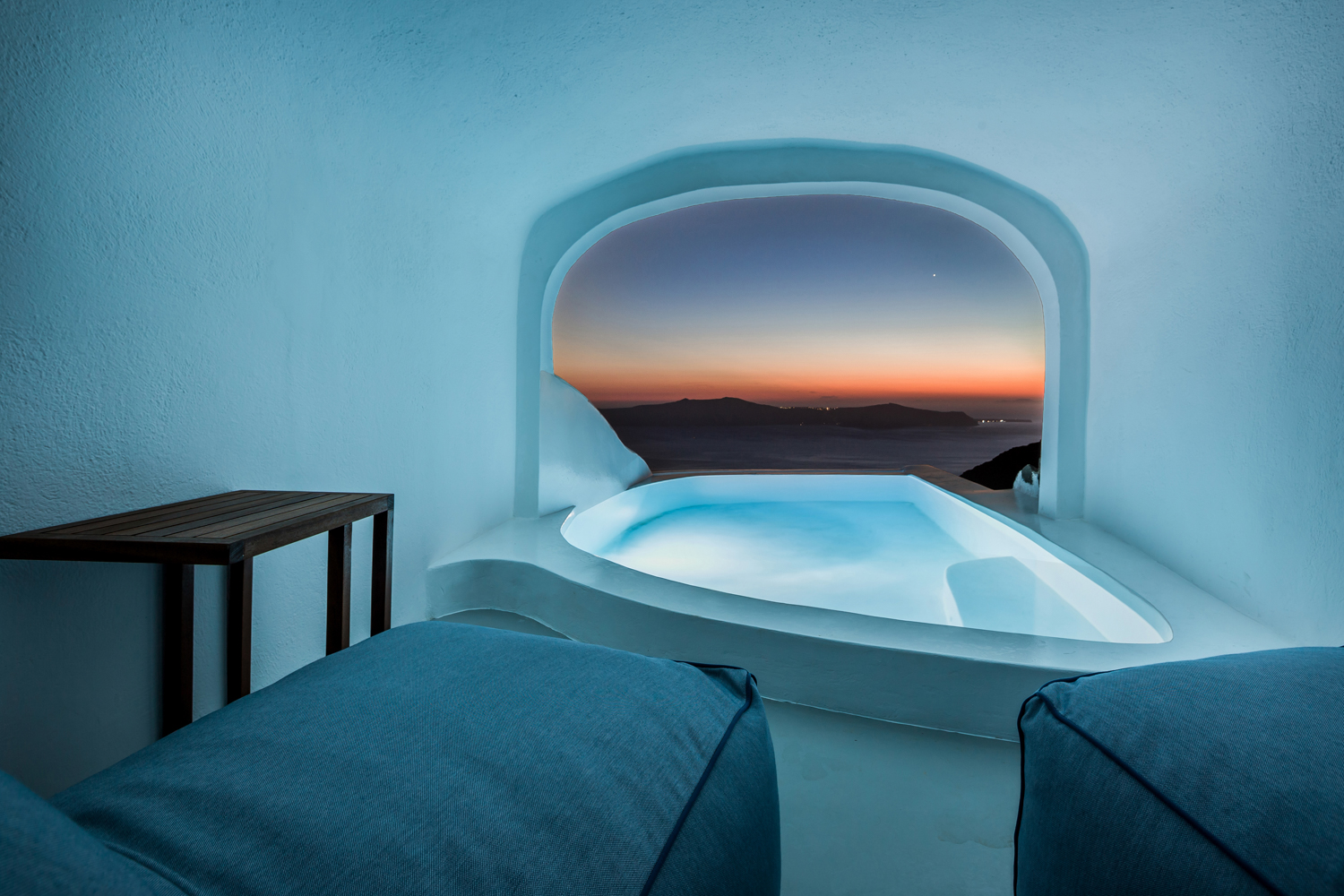 This interior and architecture photography project was captured at Sun Rocks, a boutique hotel designed as a romantic adults-only retreat overlooking the iconic Santorini sunset. Set on the dramatic caldera cliffs, the hotel offers panoramic views of the Aegean Sea, creating a cinematic and highly atmospheric setting for luxury hospitality imagery.