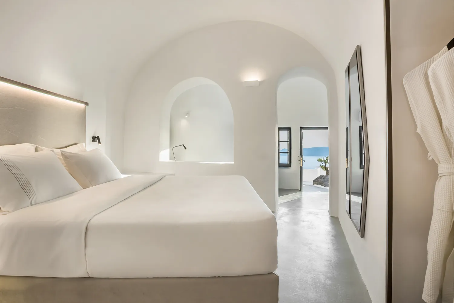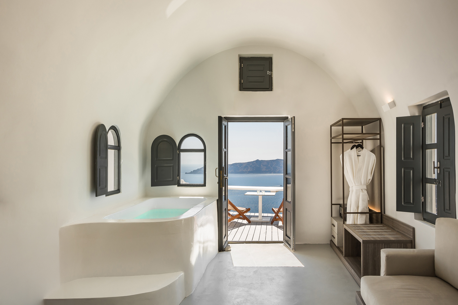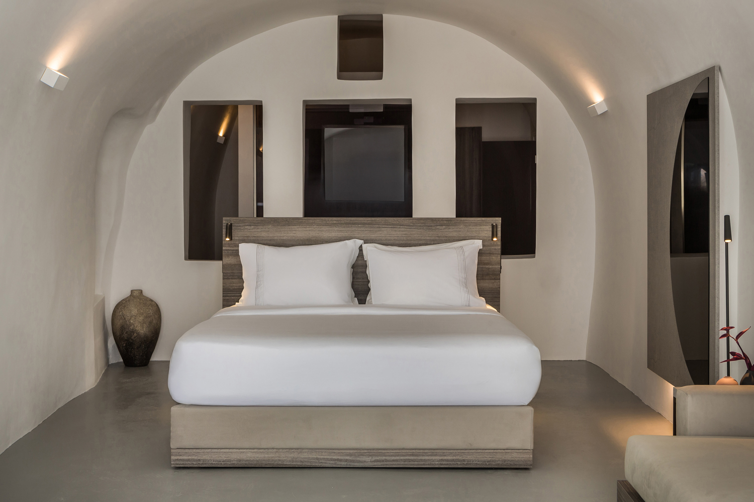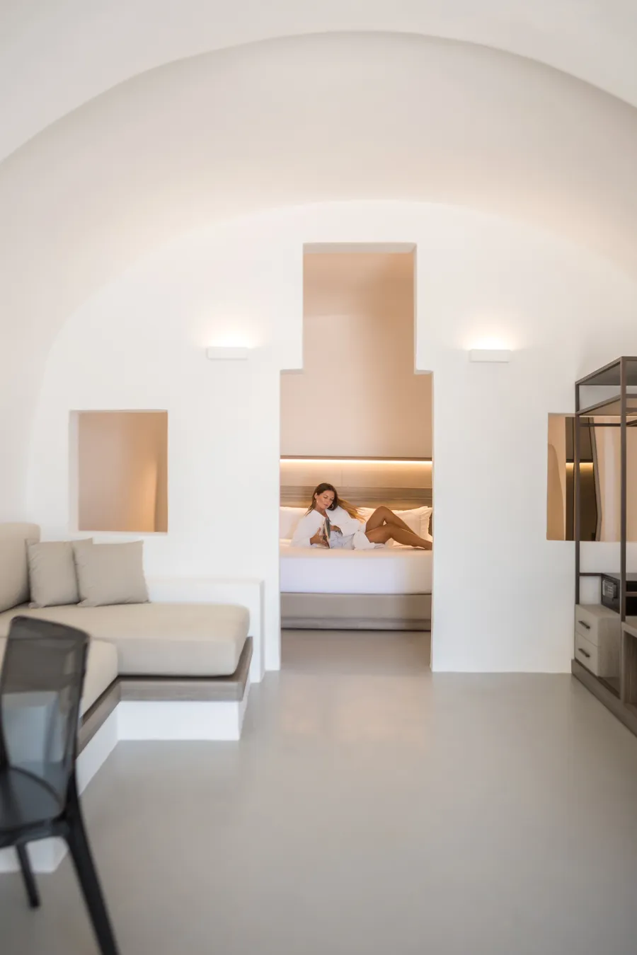 The suites, fully renovated in 2021, combine contemporary design with refined luxury, offering intimate spaces curated for couples and serene escapes. Through architectural photography, luxury interior photography, and hospitality photography, this project highlights spatial composition, natural light, material textures, and the seamless integration of design with the volcanic landscape of Santorini.