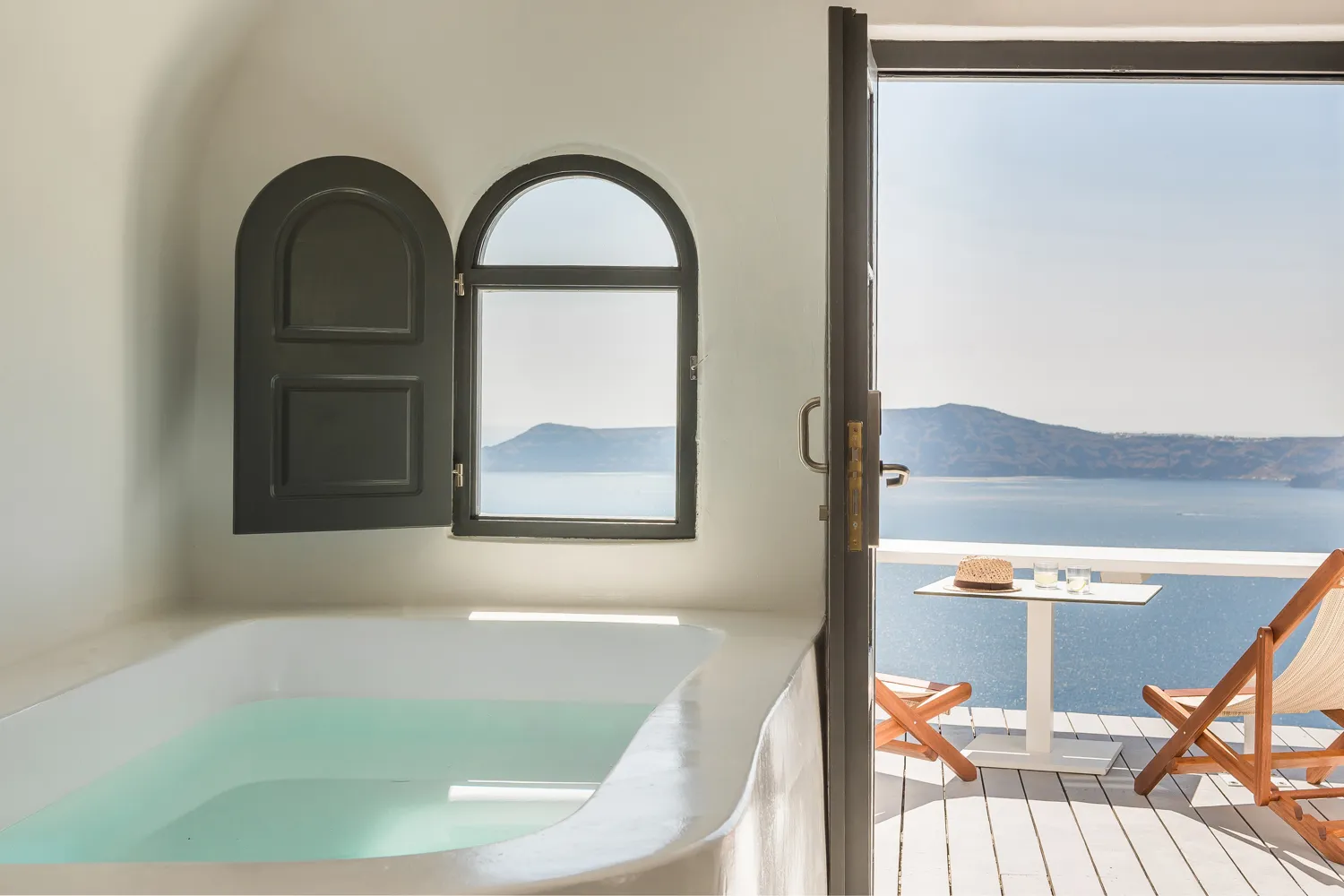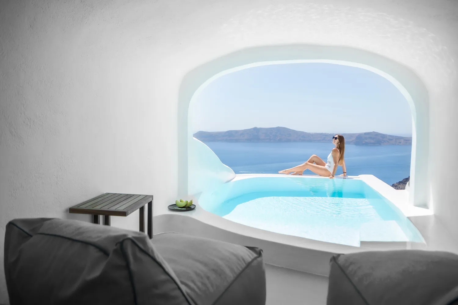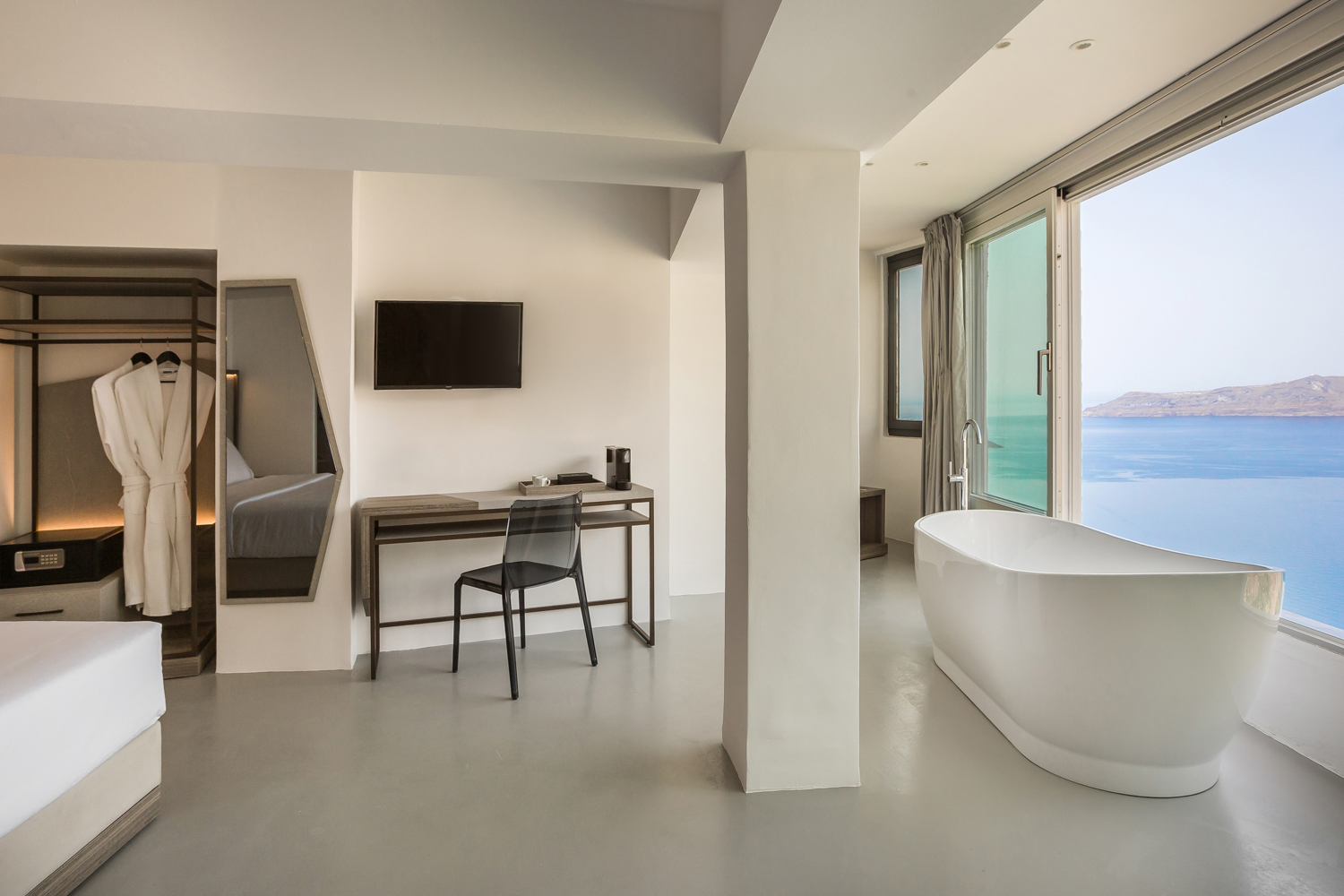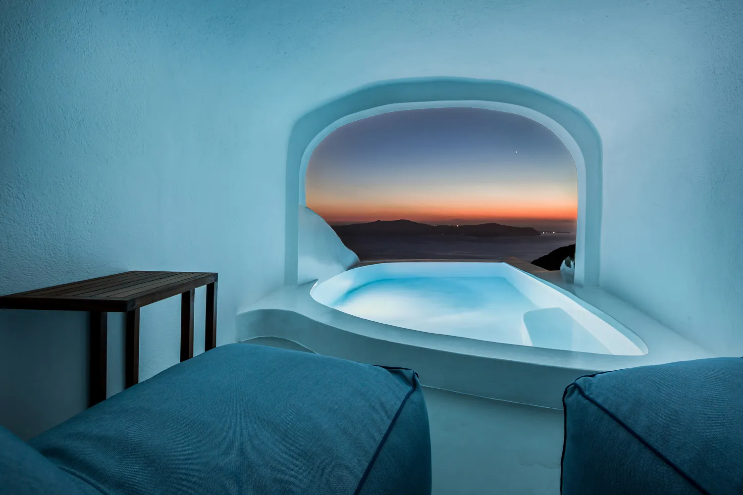 The suites, fully renovated in 2021, combine contemporary design with refined luxury, offering intimate spaces curated for couples and serene escapes. Through architectural photography, luxury interior photography, and hospitality photography, this project highlights spatial composition, natural light, material textures, and the seamless integration of design with the volcanic landscape of Santorini.