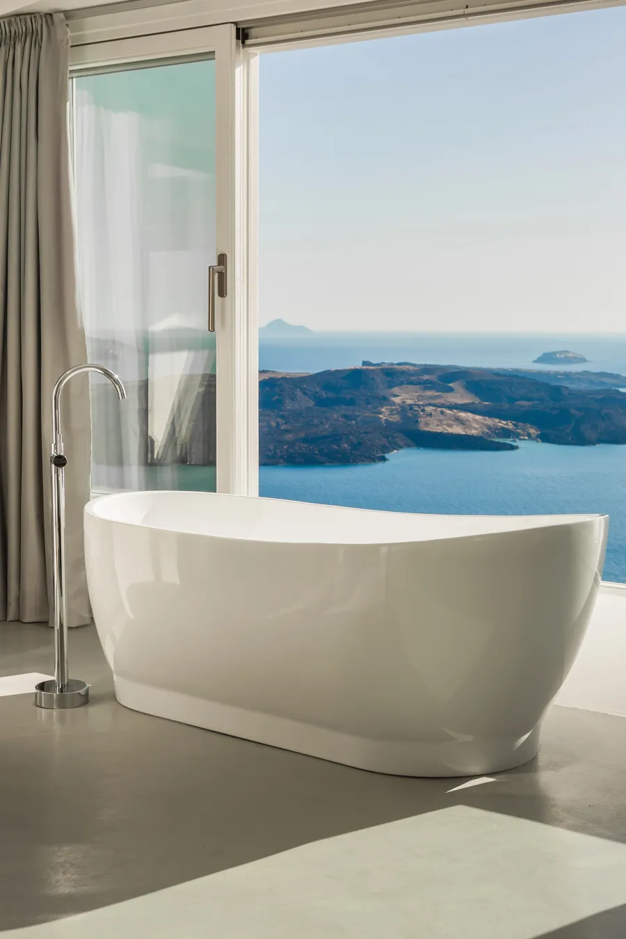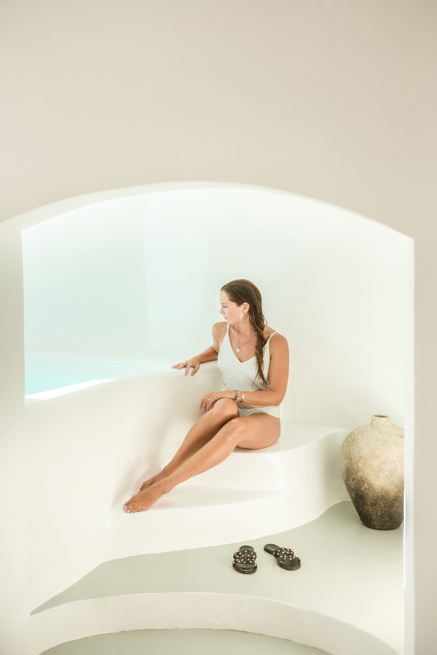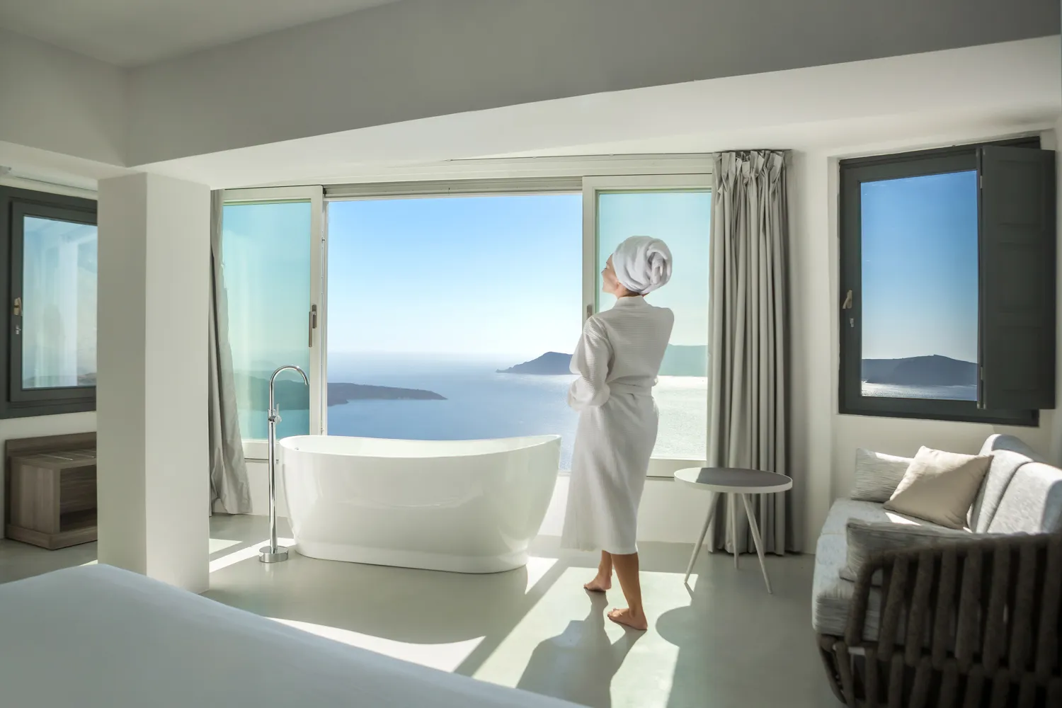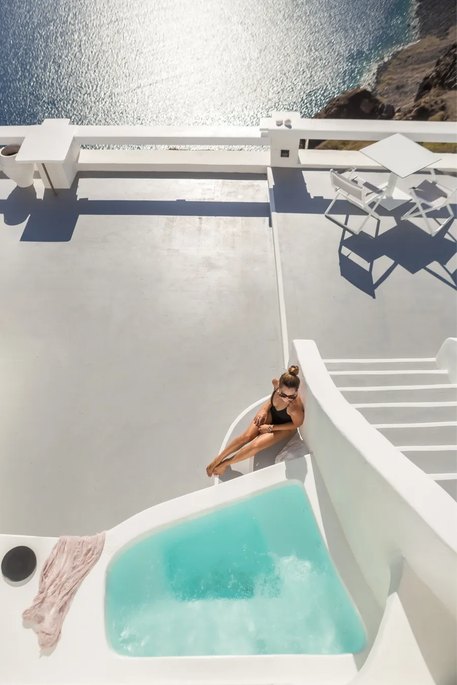 The suites, fully renovated in 2021, combine contemporary design with refined luxury, offering intimate spaces curated for couples and serene escapes. Through architectural photography, luxury interior photography, and hospitality photography, this project highlights spatial composition, natural light, material textures, and the seamless integration of design with the volcanic landscape of Santorini.