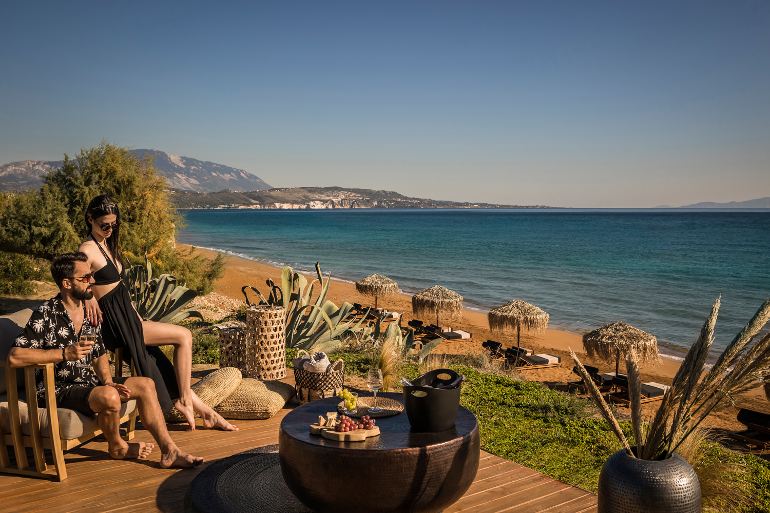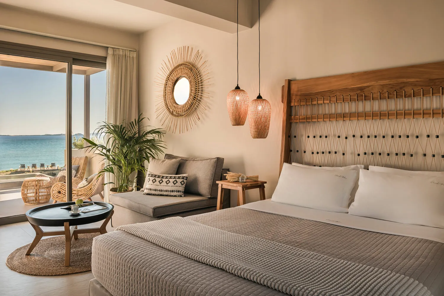 Framed by the natural beauty of Kefalonia, this interior and architecture photography project captures Grand Blue, a luxury suite complex designed to offer a calm and refined island living experience. The property combines minimalist bohemian aesthetics with contemporary comfort, creating spaces that feel both elegant and welcoming.